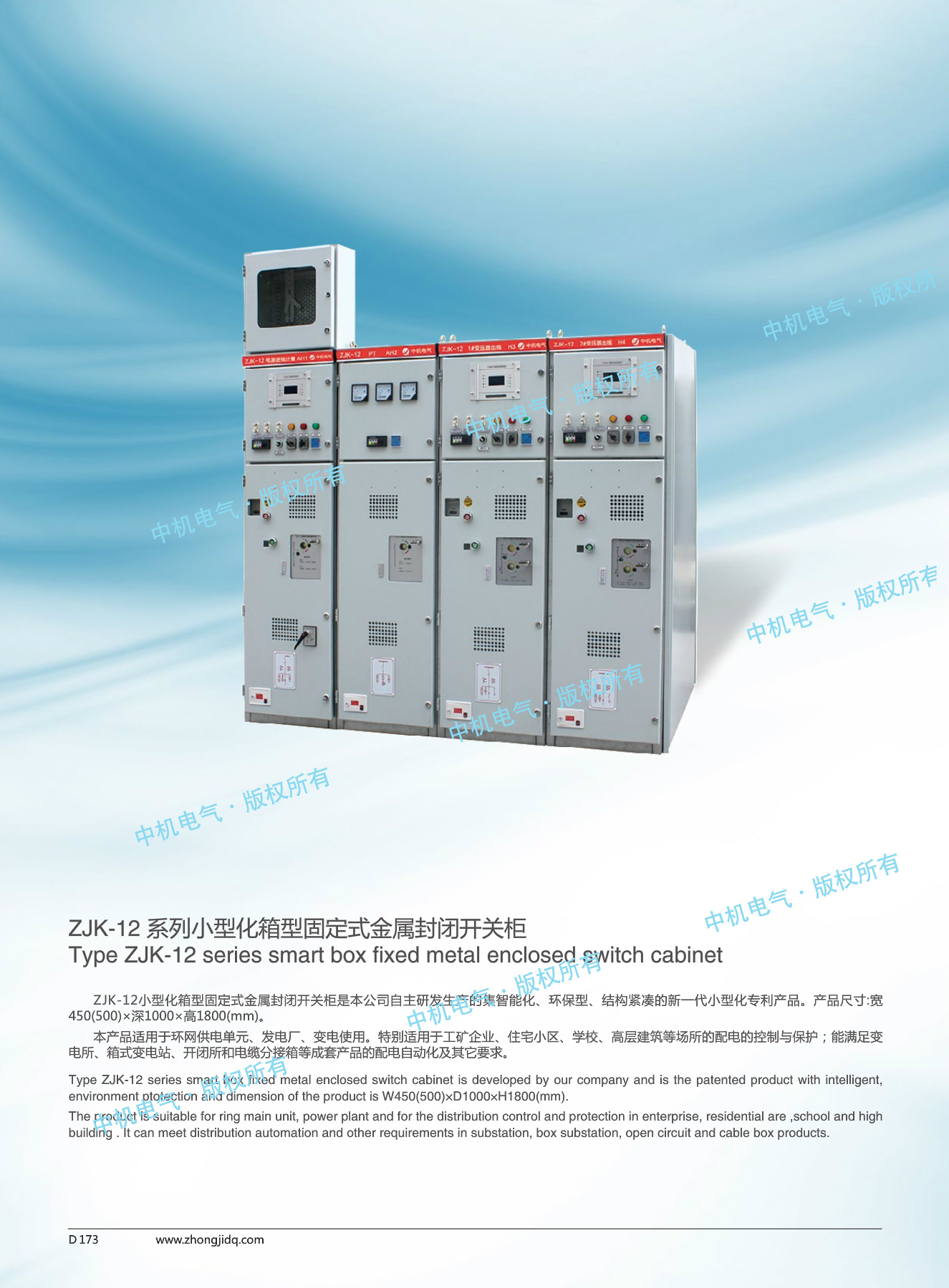 簡要描述:ZJK-12系列小型化箱型固定式金屬封閉開關(guān)柜是本公司自主研發(fā)生產(chǎn)的集智能化,環(huán)保型,結(jié)構(gòu)緊湊的新一代小型化專利產(chǎn)品。產(chǎn)品尺寸寬度450(500)X深1000X高1800(mm)...