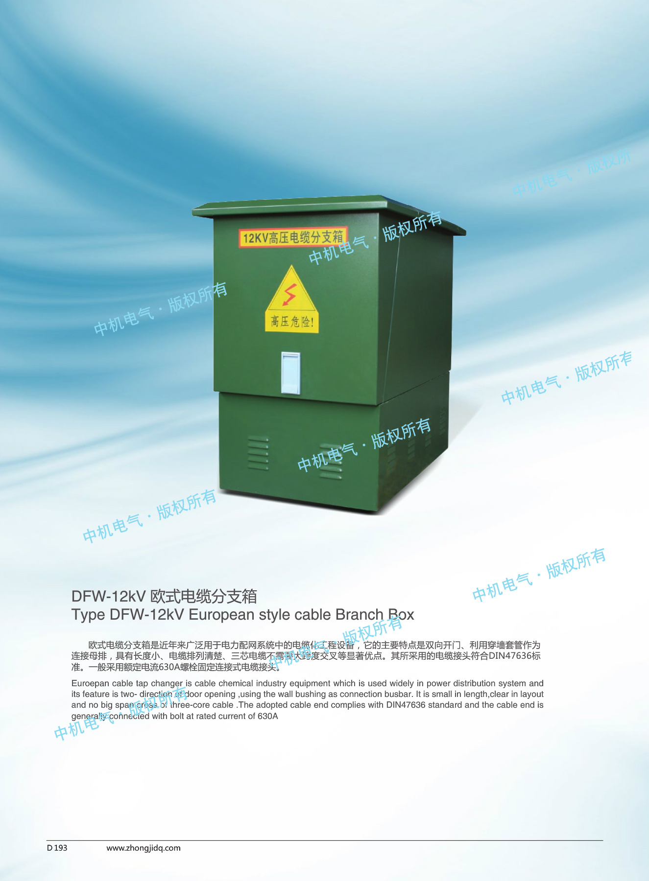 簡(jiǎn)要描述:DFW系列高壓電纜分支箱,廣泛用于10KV電纜系統(tǒng)的節(jié)點(diǎn)連接,是電纜從開關(guān)柜出線后進(jìn)行匯集與分接的主要電氣設(shè)備。分支箱的電纜接頭采用高等級(jí)絕緣的進(jìn)口橡膠緊包覆絕緣,無裸露帶...