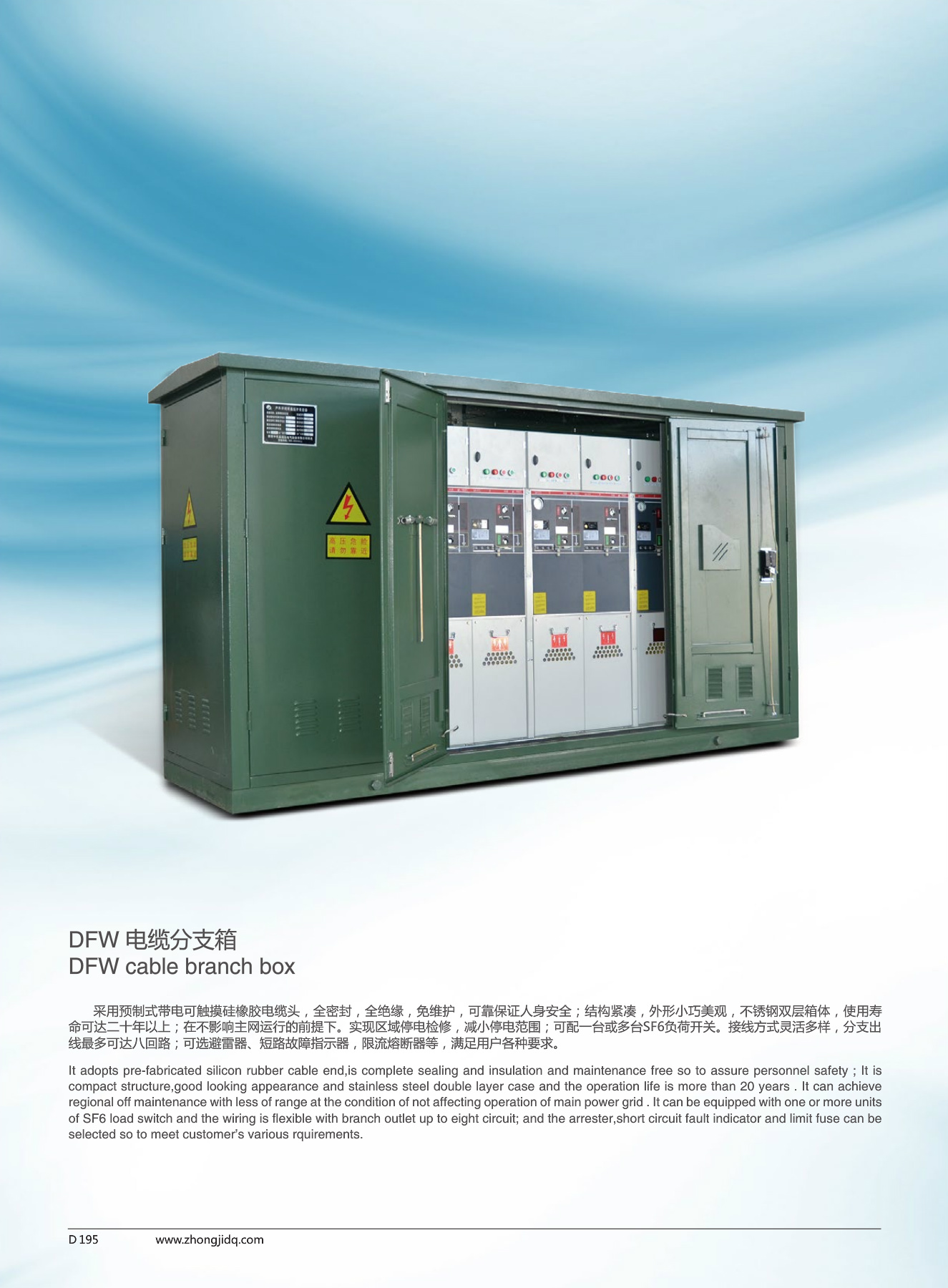 簡(jiǎn)要描述: 采用預(yù)制式帶電可觸摸硅橡膠電纜頭,全密封、全絕緣、免維護(hù)、可靠保證人身安全;結(jié)構(gòu)緊湊,外形小巧美觀,不銹鋼雙層箱體,使用壽命可達(dá)二十年以上;在不影響主網(wǎng)運(yùn)行的前提...